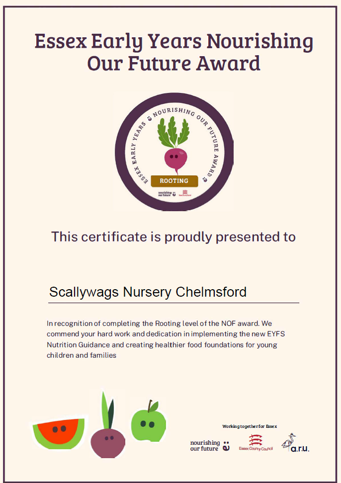 We are proud to be working with ARU and Essex County Council as part of the Nourishing Our Future (NOF) project and to have completed the first stage of the NOF Award, Rooting. Through this work, we have strengthened our food and nutrition practice, helping children build positive, healthy relationships with food from an early age.