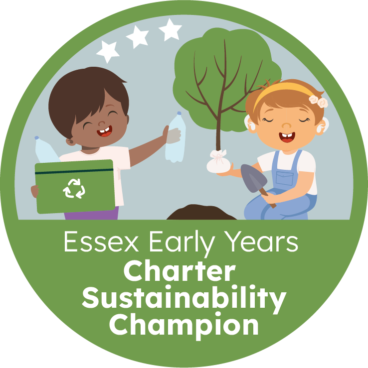 We are proud to be part of Essex’s Charter membership, a county-wide commitment to giving every child the best start in life. By signing up, we have pledged to uphold shared principles of high-quality care, collaboration, and respect for families, working together with local providers and partners to support children throughout their early years journey and into school. We have also achieved our sustainability award and are a ‘Charter Sustainability Champion’.